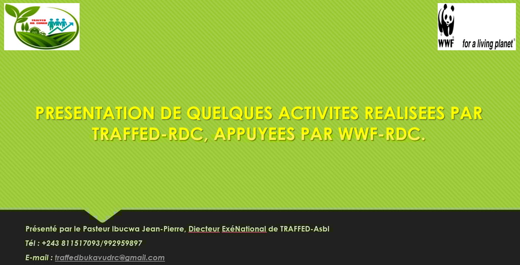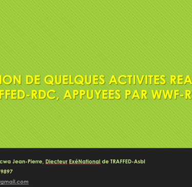Quelques activités réalisées par traffed-rdc, appuyées par wwf-rdc. Présenté par le Pasteur Ibucwa Jean-Pierre, Diecteur ExéNational de TRAFFED-Asbl